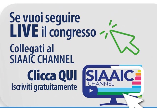 Gentili Soci, in occasione del XXXVII Congresso Nazionale SIAAIC, desideriamo coinvolgervi attivamente nella creazione di contenuti social su diverse tematiche. Se siete interessati a contribuire con brevi interviste, video o altri contenuti per i nostri canali social ufficiali, vi invitiamo a passare dallo stand SIAAIC presente in sede congressuale dal 3 al 5 ottobre, dove, insieme ai nostri Social Media Manager potrete concordare gli argomenti e gli slot di registrazione, in base alle esigenze editoriali. Sarà un’occasione per condividere il Vostro punto di vista ed arricchire i contenuti scientifici della comunità social Siaaic. Vi aspettiamo numerosi!
