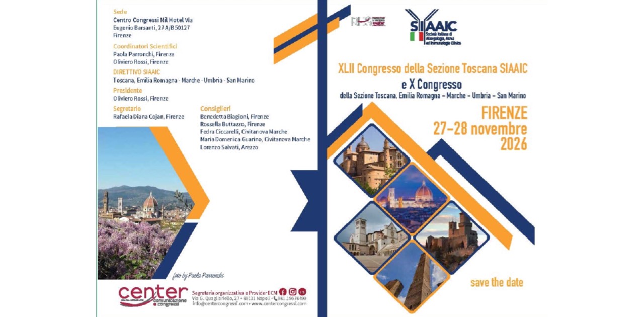 XLII CONGRESSO DELLA SEZIONE TOSCANA SIAAIC E X CONGRESSO DELLA SEZIONE TOSCANA, EMILIA-ROMAGNA – MARCHE – UMBRIA – SAN MARINO - 27 E 28 NOVEMBRE 2026